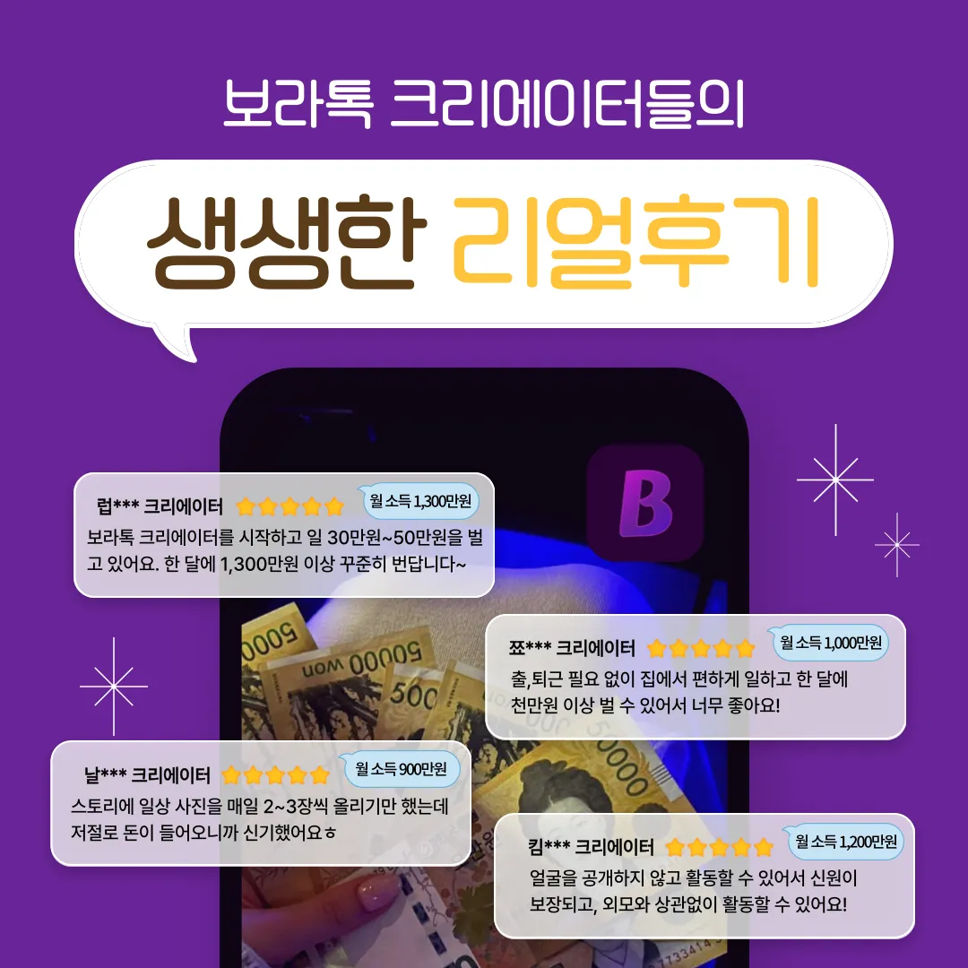 보라톡에서 크리에이터로 활동하고 수익을 창출해 보세요!
